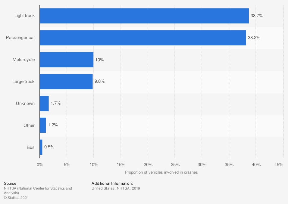 Distribution of vehicles involved in fatal traffic crashes in the US in one recent year