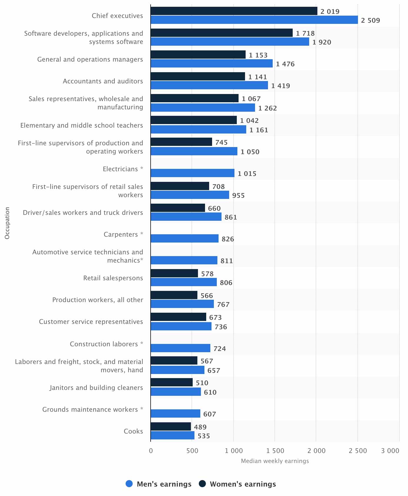 Graphic #1: https://www.statista.com/statistics/244202/us-gender-wage-gap-by-industry/